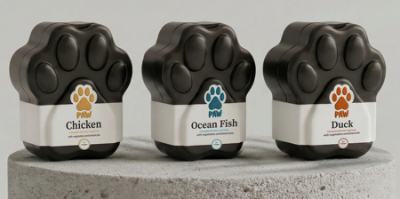 Creative pet food packaging shaped to look like a paw visually communicates the product’s purpose before a customer even reads the label.