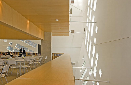 Inside the library, you will find a computer room, daycare center, art gallery and an auditorium.