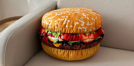 A burger you can sit on AND throw in the washing machine? Pillow design has gone too far…