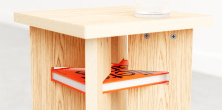 In a world obsessed with maximizing storage, wooden side table features integrated space for only one book.