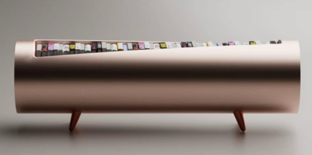 Every book becomes part of a curated strip of color, like a reading gallery of knowledge embedded within a metallic shell.